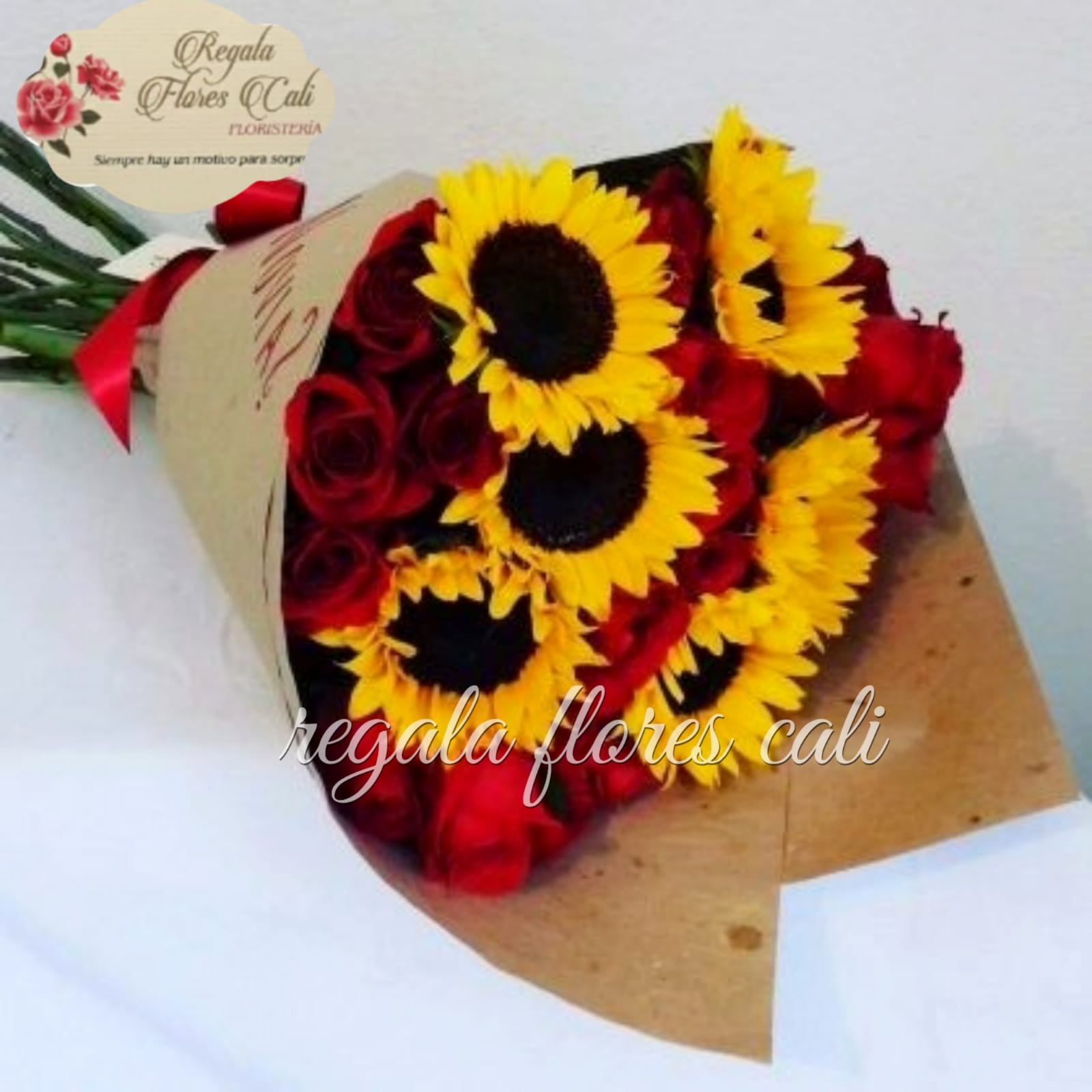 Buquet rosas y Girasoles, perfecto para Sorprender en cali y con domicilio en toda la ciudad.