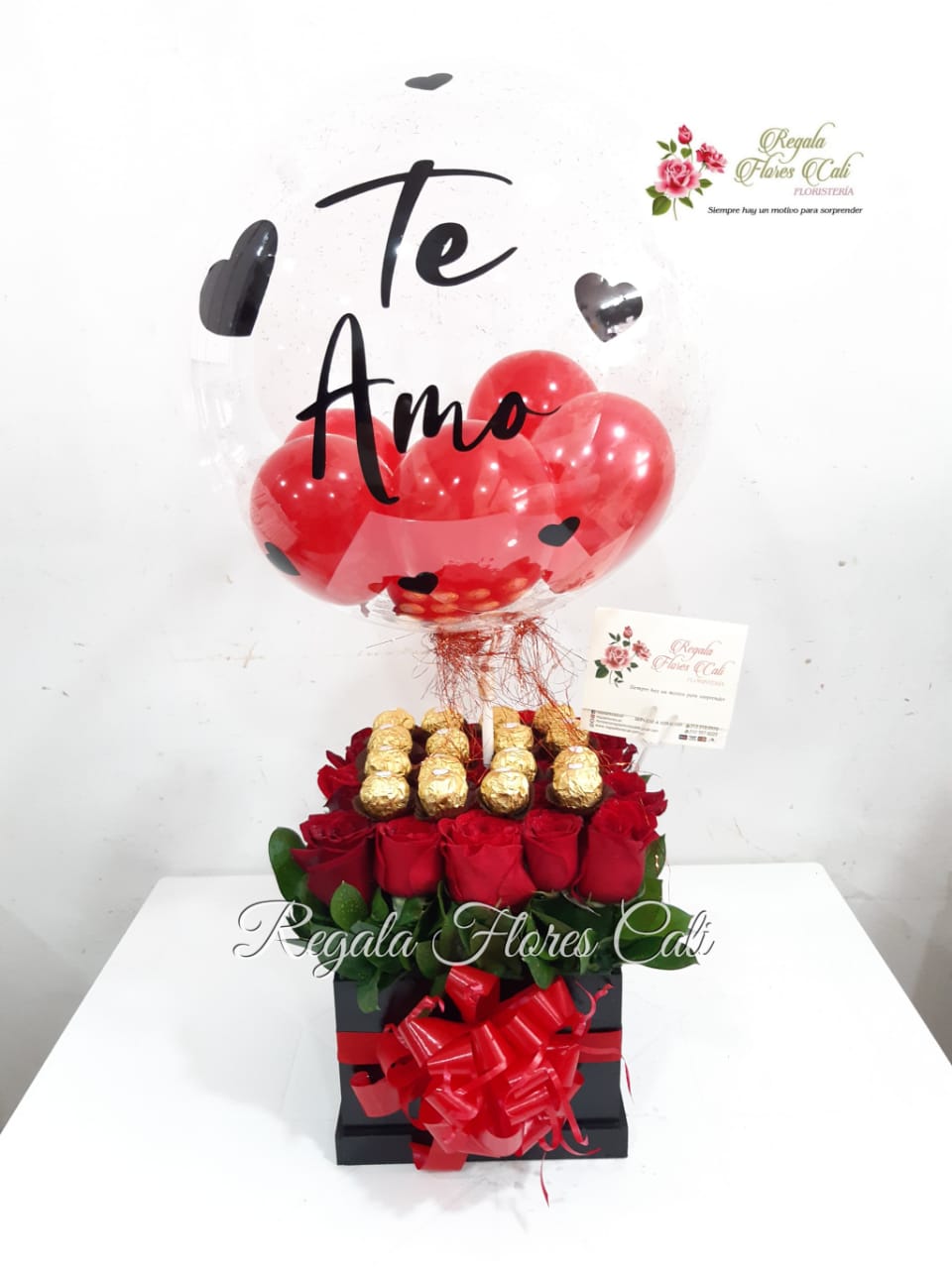 arreglo floral con rosas y chocolates, perfecto para Sorprender en Cali y con domicilio en toda la ciudad.